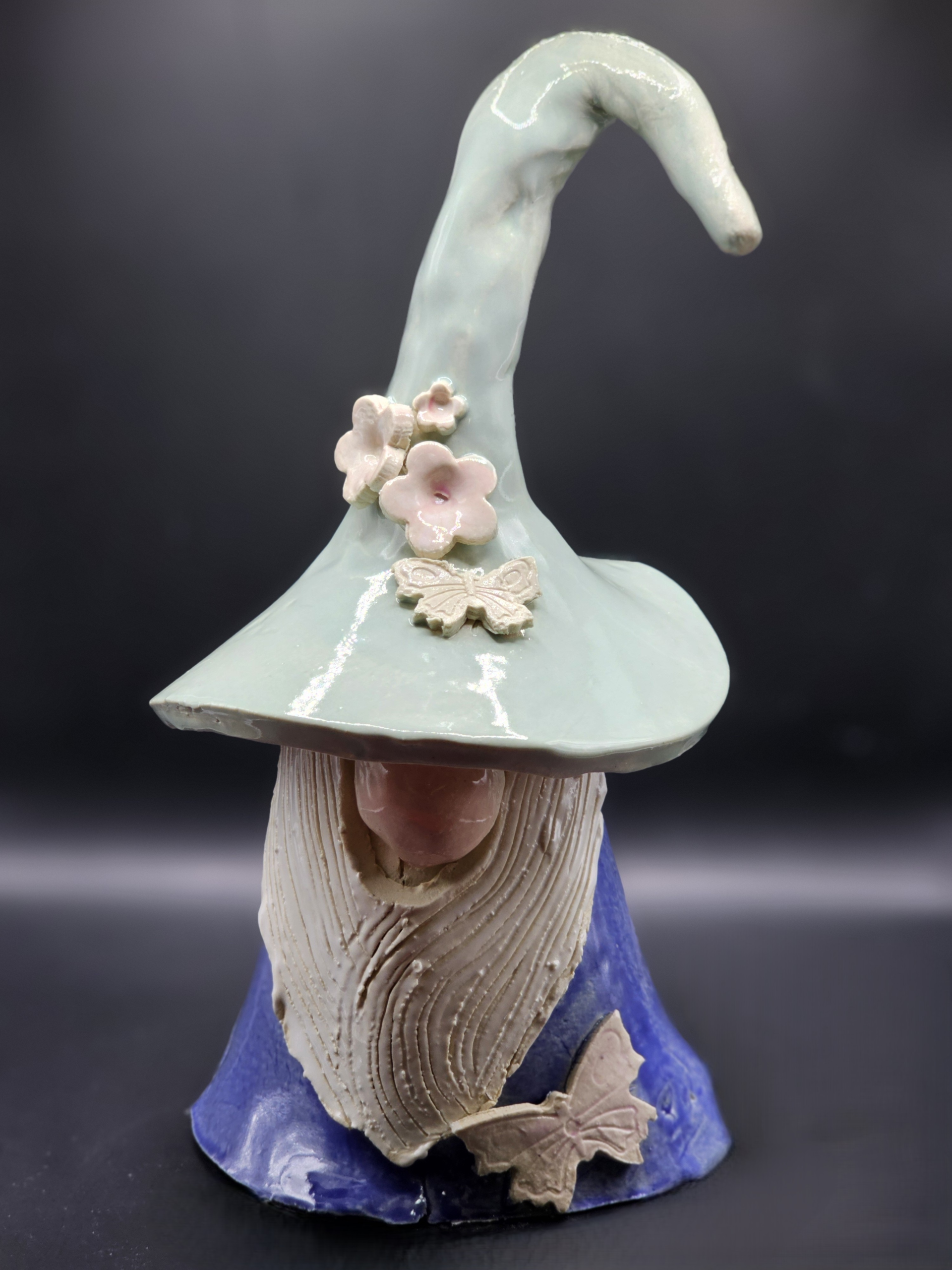 & Free ShippingThis little gnome loves the cherry blossoms and honors the butterflies that appear in his garden! His hat is seafoam green and his cloak is blue. Delicate cherry blossoms and butterflies flit about him.
