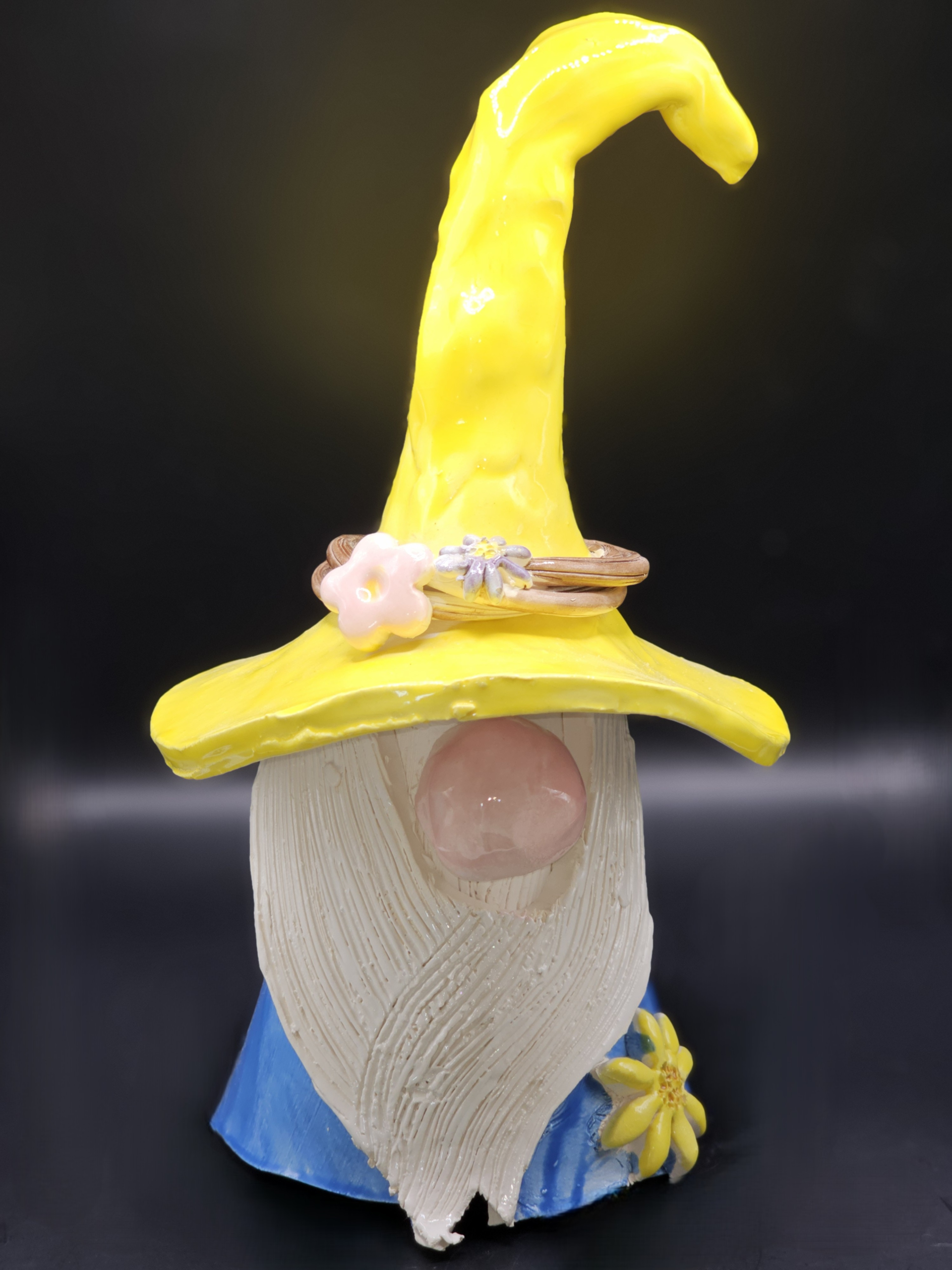& Free ShippingThis cheery gnome has a sunshine yellow hat with a wove wooden wreath adorned with flowers. He also has a bright sunflower on his blue cloak. He brings light, beauty and joy wherever he is!